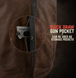 David R. High quality, thick leather and a very good fit. Heavy duty snaps and zippers and inside pockets are made well with a secure place for your weapon or valuables. True to size for me.