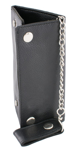 Milwaukee Leather MLW7875 Men's Black Leather Tri Fold Long Wallet with Steel Chain