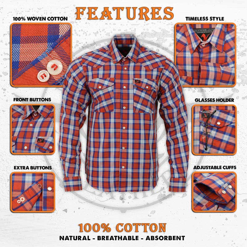 Milwaukee Leather MNG11652 Men's Black Grey and Red Long Sleeve Cotton Flannel Shirt