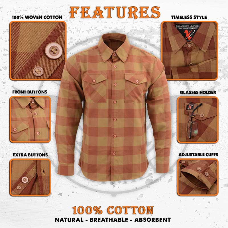Milwaukee Leather MNG11667 Men's Brown and Beighe Long Sleeve Cotton Flannel Shirt