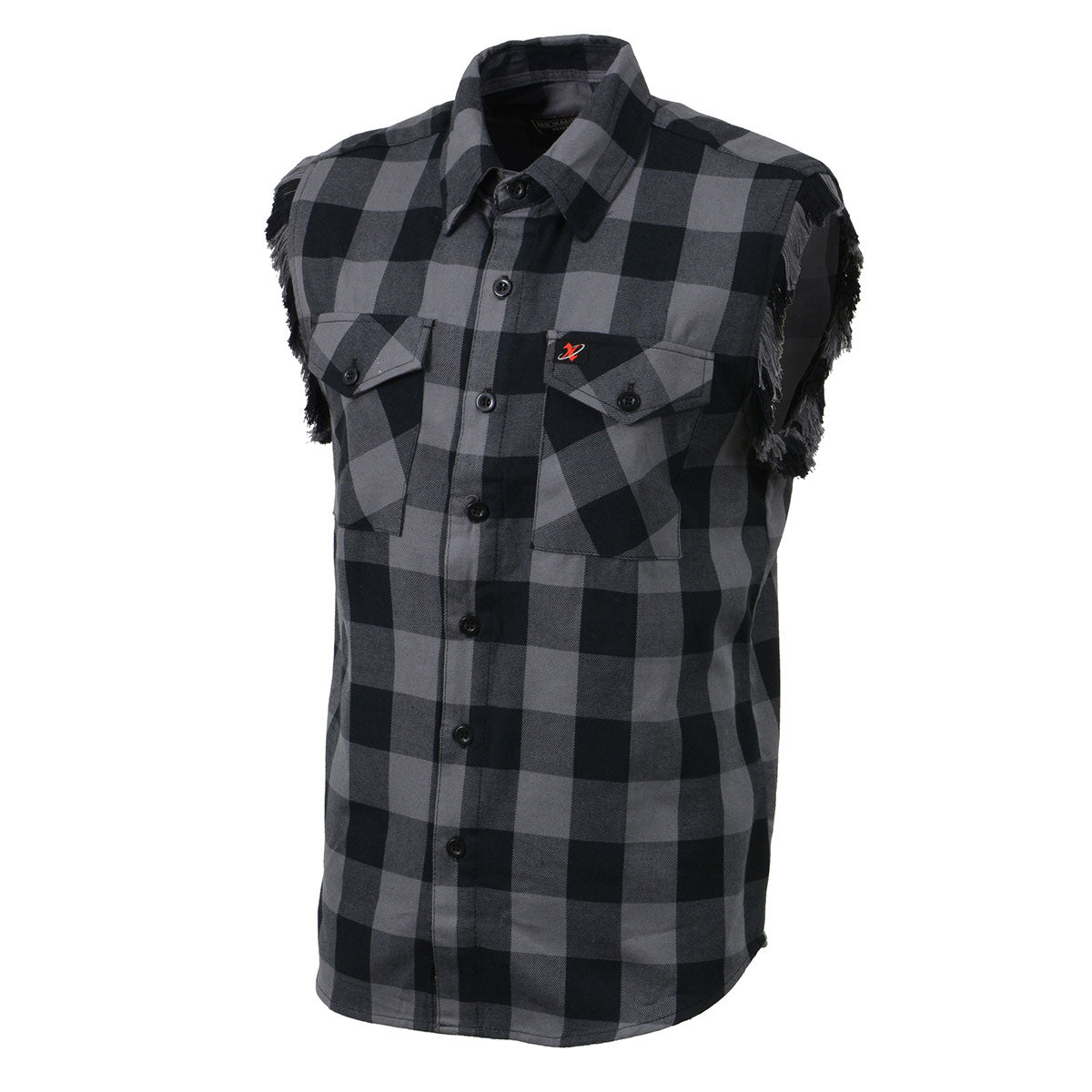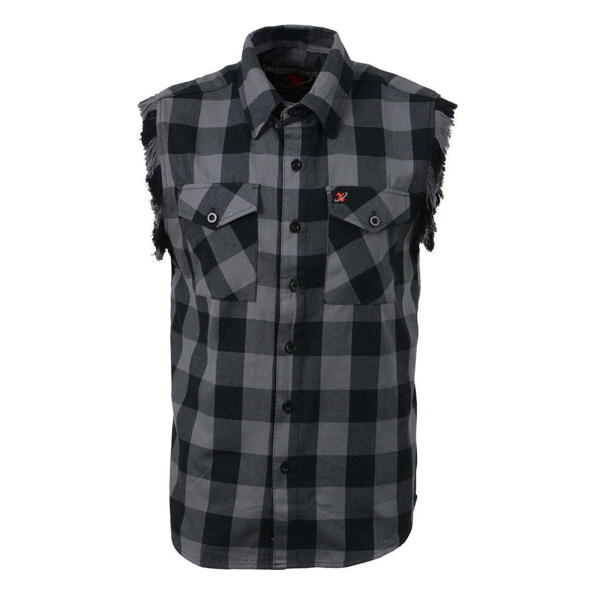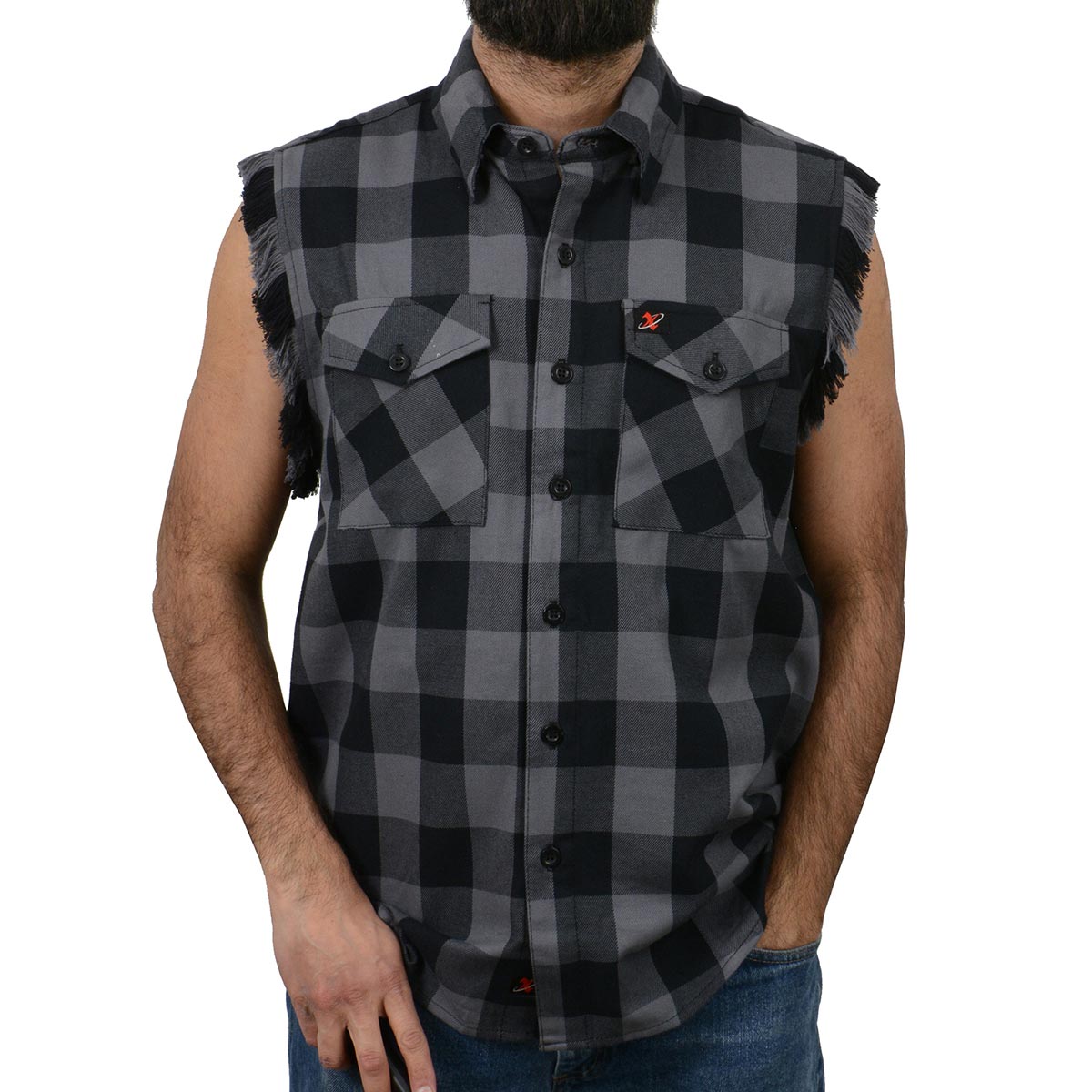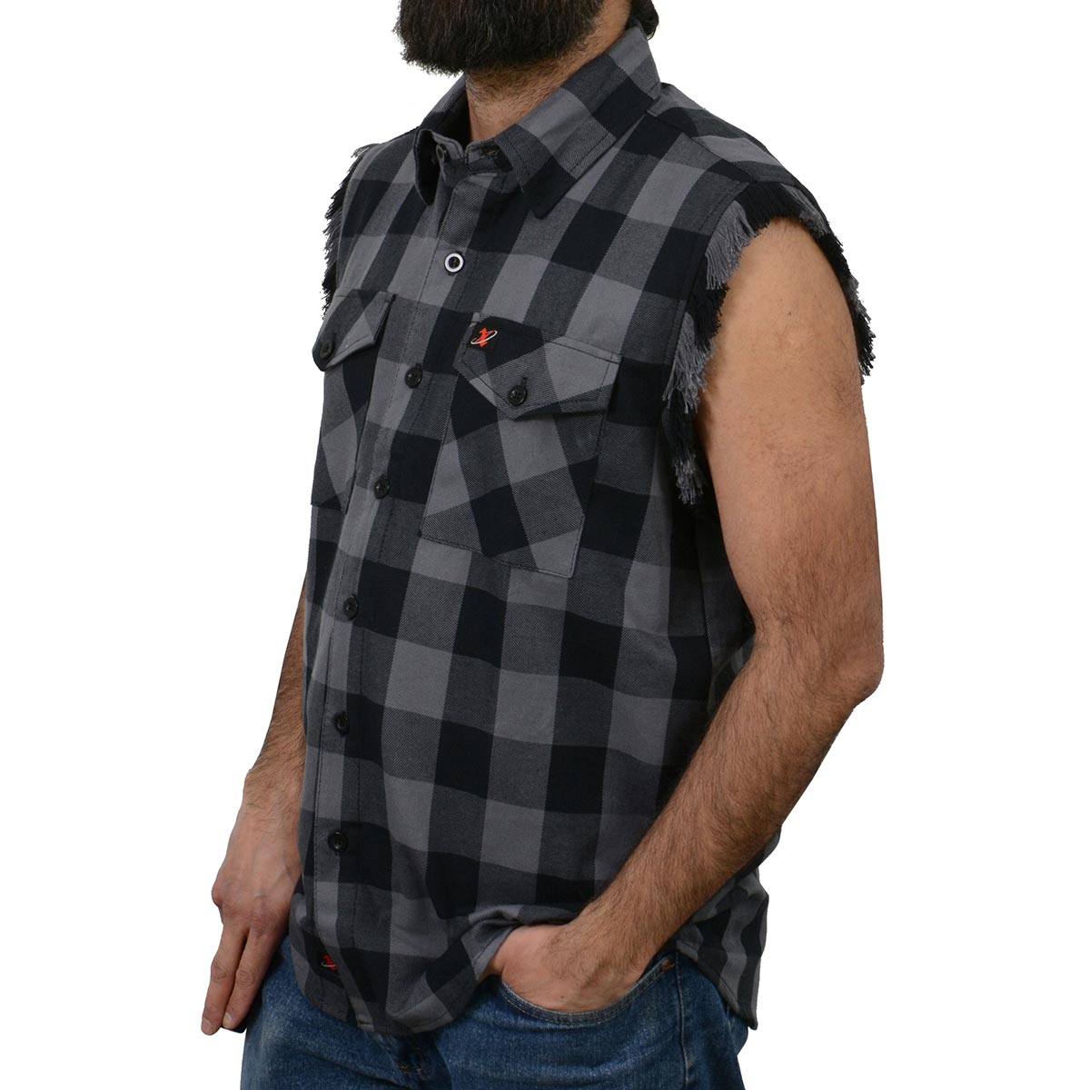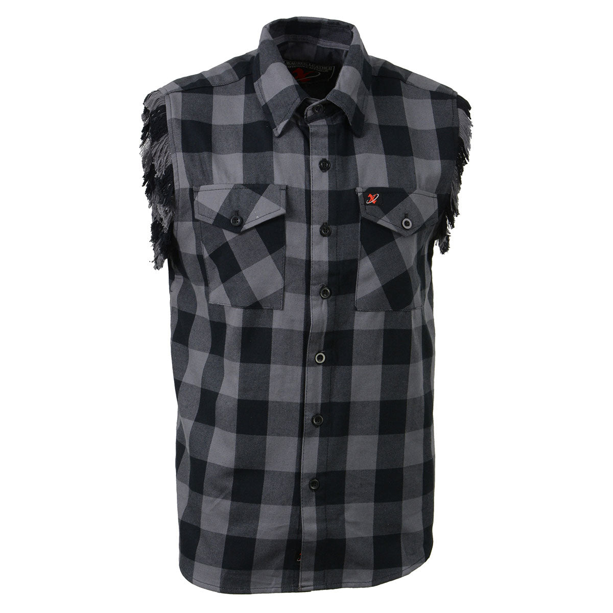 Milwaukee Leather DM4004 Men's Grey Lightweight Denim Shirt with Sleeveless Frayed Cut Off