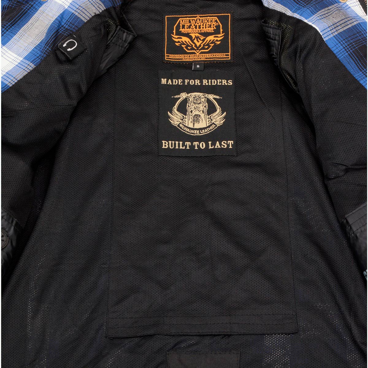 Milwaukee Leather MPM1650 Men's Plaid Flannel Biker Shirt with CE Approved Armor - Reinforced w/ Aramid Fiber