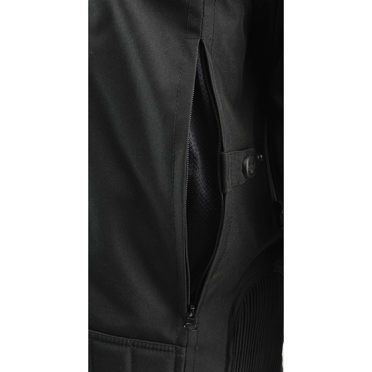 - Ventilation System: Under Arms Vents on Each Side with Zipper Opening and Closure