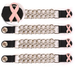 Milwaukee Leather Pink Ribbon Medallion Vest Extender - Double Chrome Chains Genuine Leather 6.5" Extension 4-PCS MLA6021SET