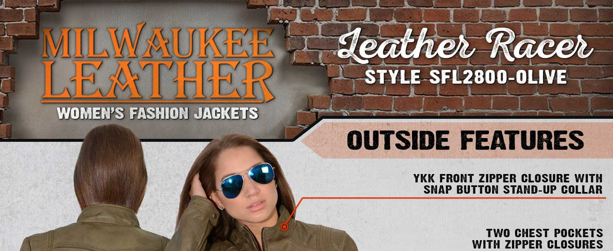 Milwaukee Leather SFL2800 Women's Racer Black Stand Up Collar Motorcycle Fashion Leather Jacket
