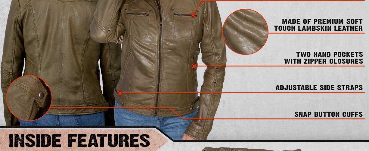 Milwaukee Leather SFL2855 Women's Saddle Zip Front Leather Jacket with Side Stretch Fitting