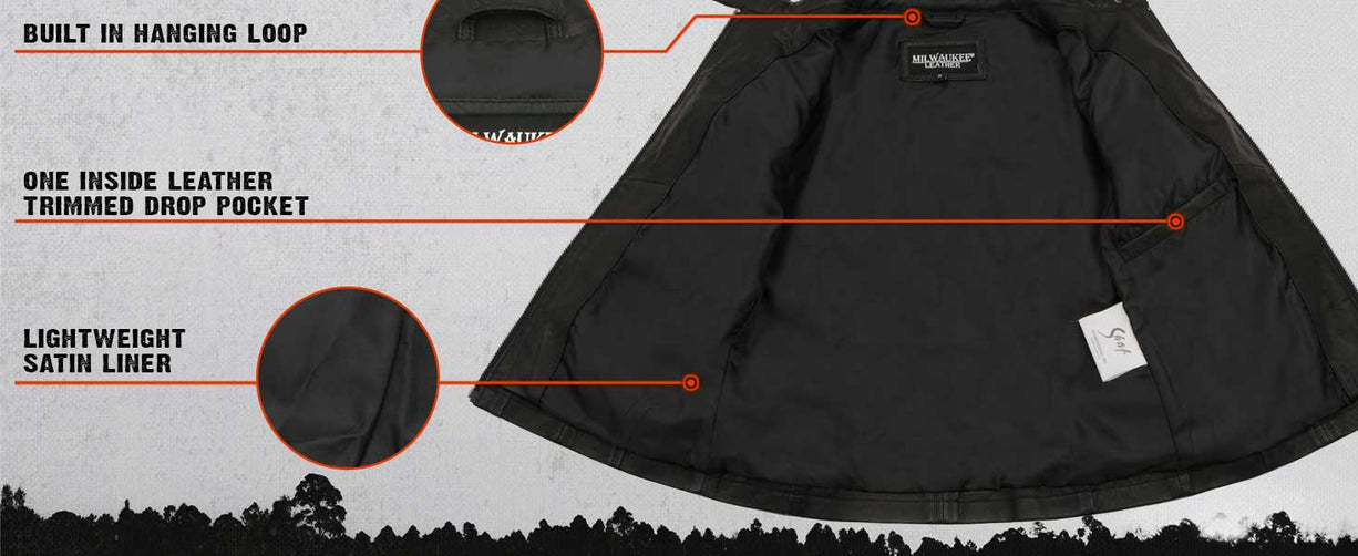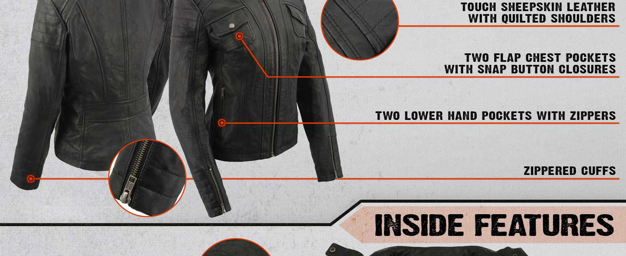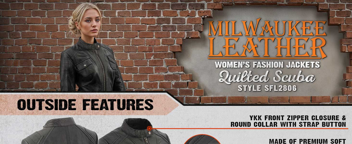 Milwaukee Leather SFL2806 Women’s Black Mandarin Scuba Collar Leather Jacket with Quilted Shoulders and Cuffs