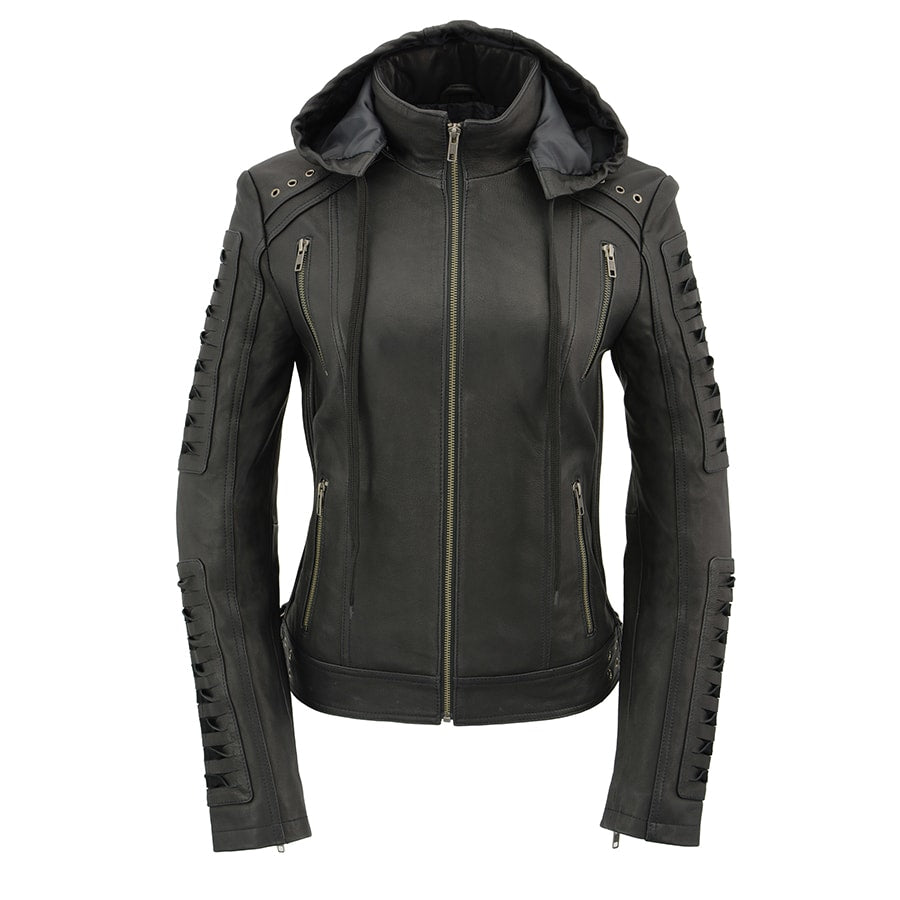 Milwaukee Leather MPL2745 Women's Black Zipper Front Jacket with Full Sleeve Removable Hoodie