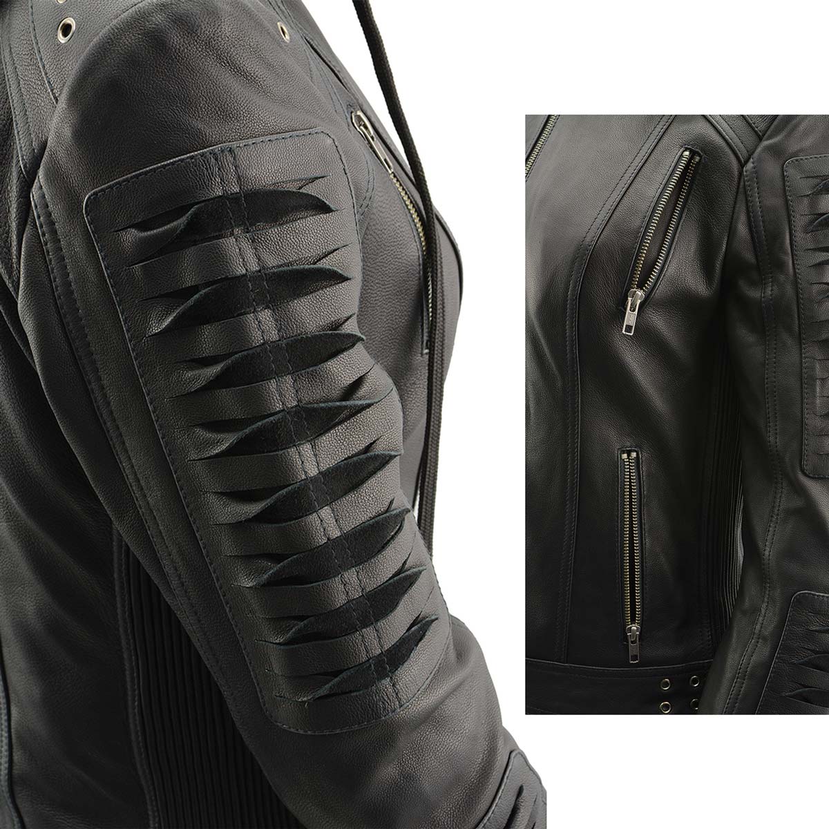Milwaukee Leather MLL2516 Black Leather Rub-Off Leather Jacket with Hoodie for Women
