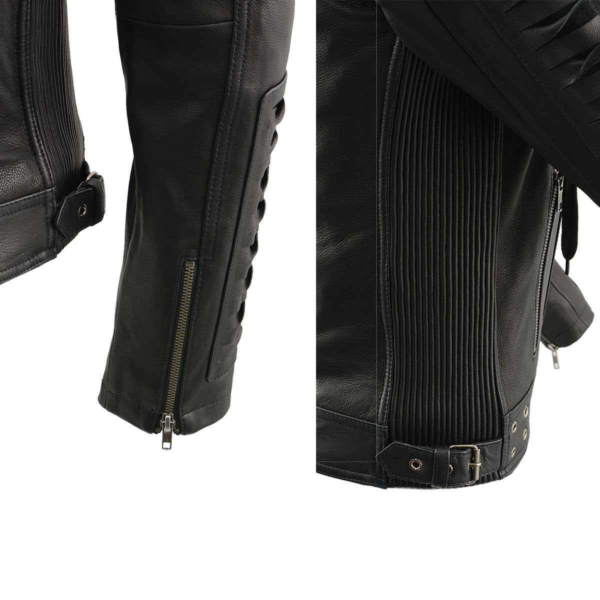 Milwaukee Leather SFL2855 Women's Saddle Zip Front Leather Jacket with Side Stretch Fitting