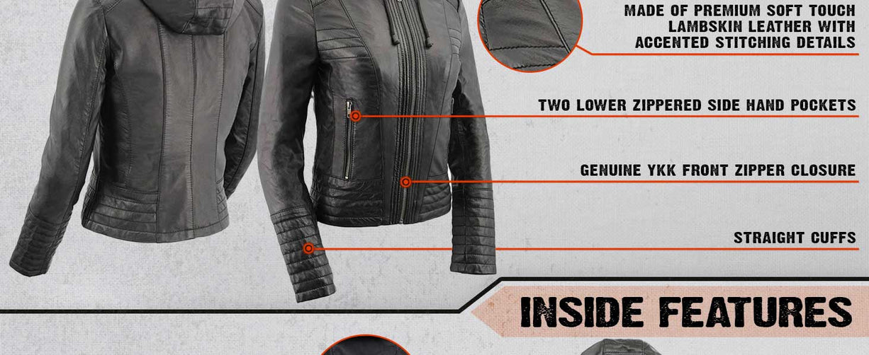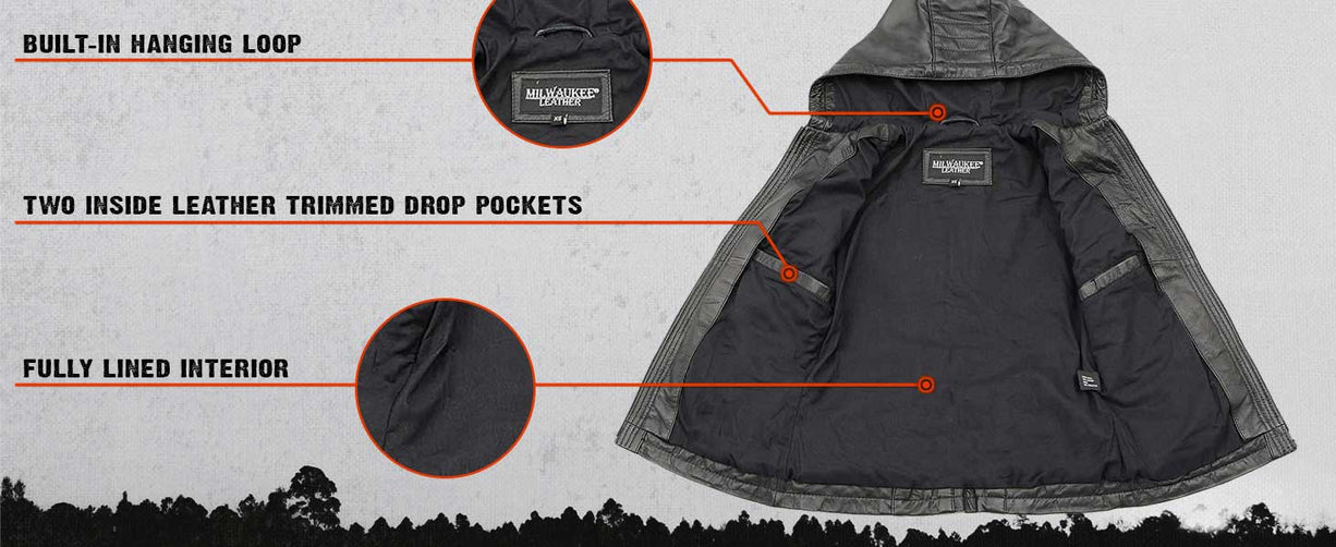 Milwaukee Leather MLL2516 Black Leather Rub-Off Leather Jacket with Hoodie for Women