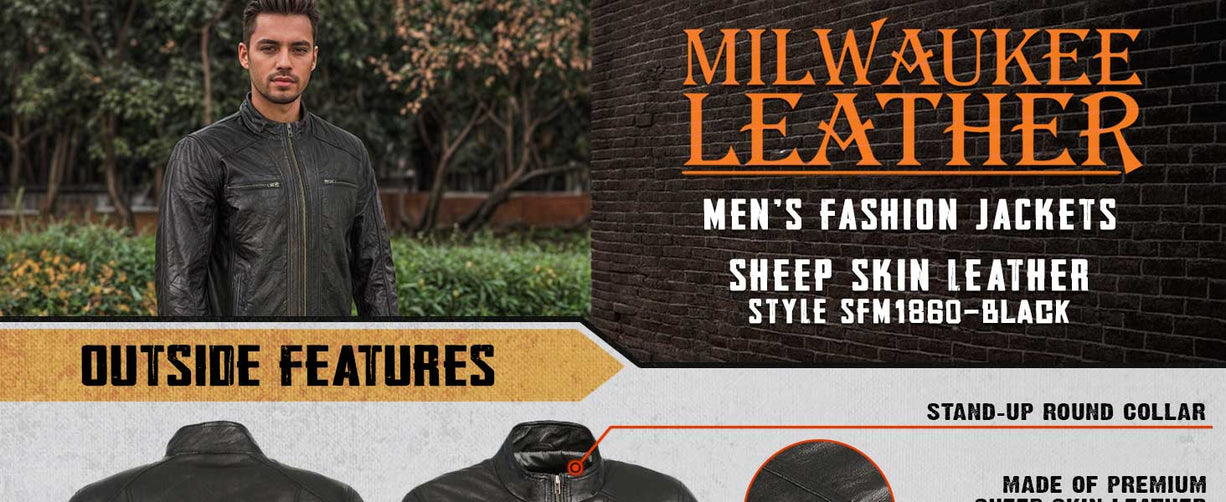 Milwaukee Leather SFM1875 Men's New Zealand Lambskin Leather with Shirt Style Collar