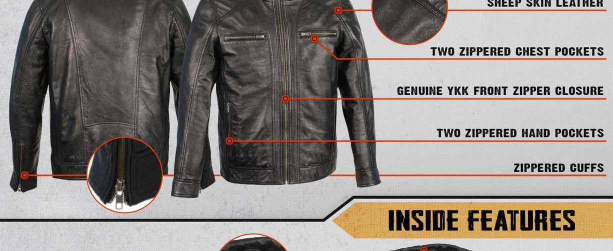 Milwaukee Leather Vintage SFM1808 Men's Black Leather Seamed Shoulder Zipper Front Jacket