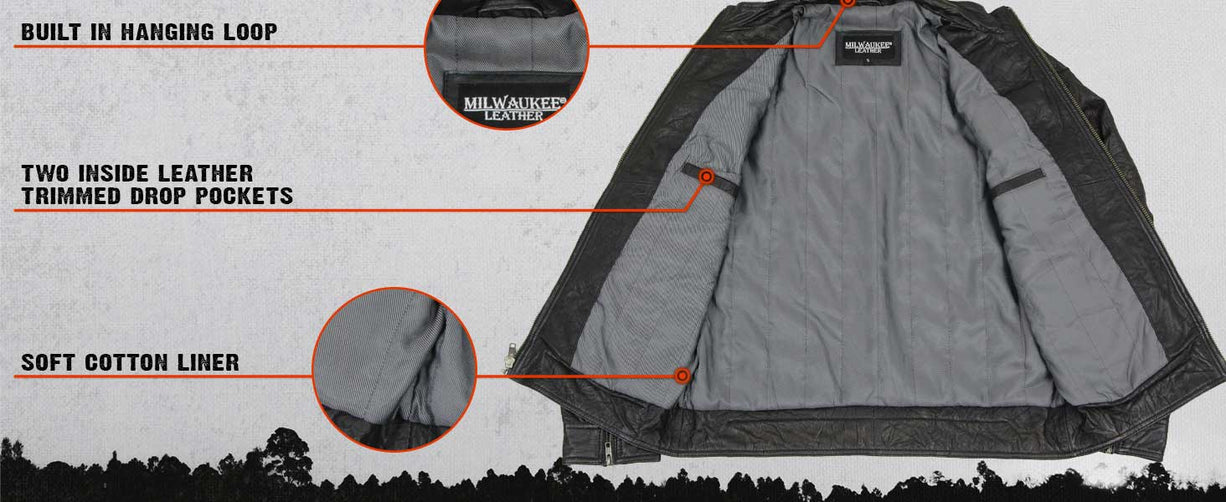 Milwaukee Leather Vintage SFM1804 Men's Classic Black Zipper Front Jacket with Shirt Collar