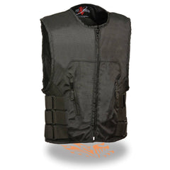 I am very happy with this vest, the picture is a bit misleading as the back armor is inside not on the outside of the back, however it has very nice padding and zips into place and I barely notice it. The vest is very comfortable with the adjustable side straps I can cinch it snug like I prefer. Great product at a great price!