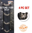 • Chrome Chain | Our motorcycle vest extenders feature diamond cut stainless steel chrome-finish with double chains that are 4 inches long. Heavy duty and corrosion resistant. These vest chains extenders are designed to increase the size or adjust the fit, and are typically used in activities like motorcycle riding, where a snug fit is important for safety and comfort. They keep your outfit in place without any flapping around.