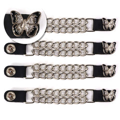 Milwaukee Leather Sparkle Butterfly Medallion Vest Extender - Double Chrome Chains Genuine Leather 6.5" Extension 4-PCS MLA6022SET