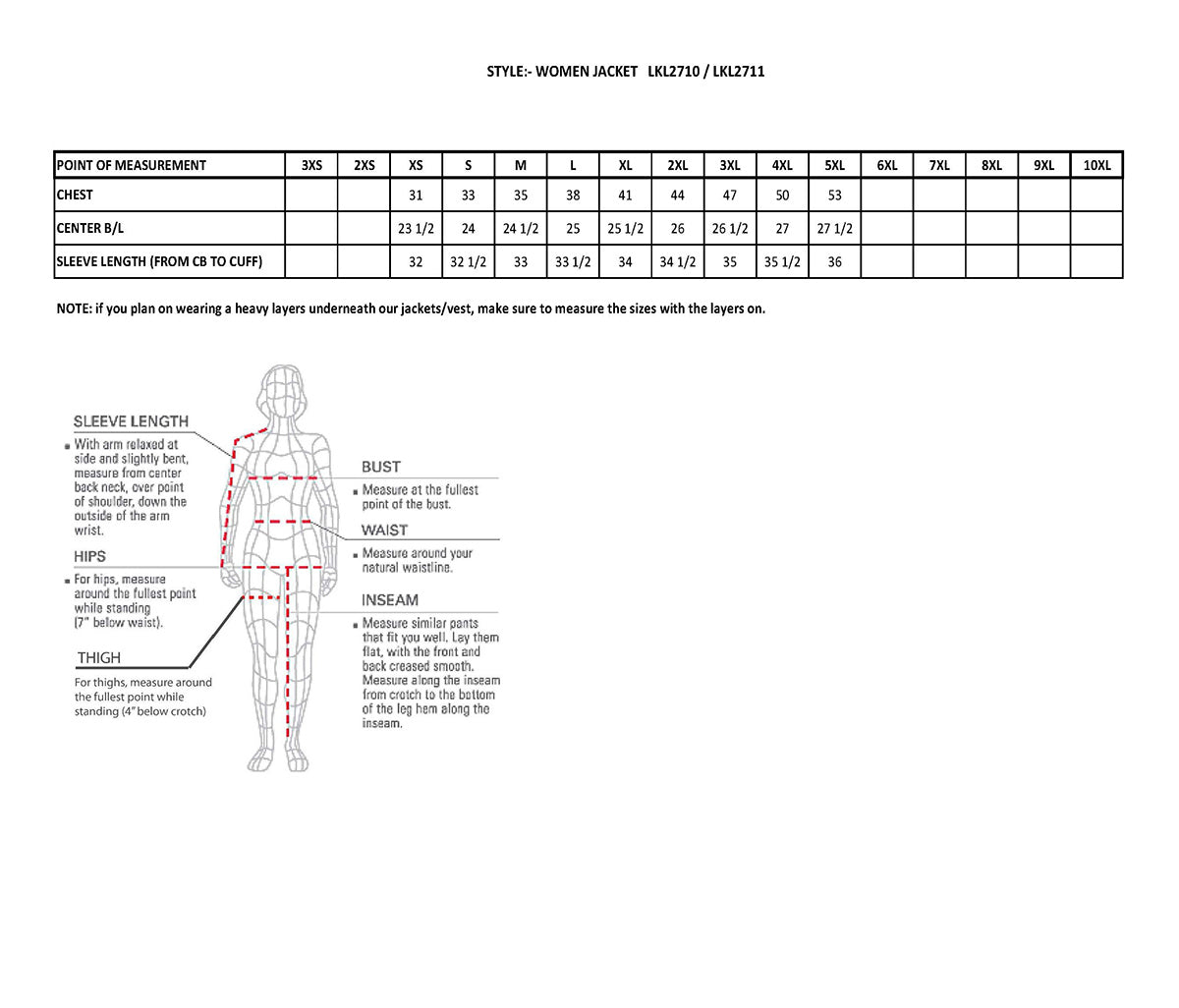 - Full Sleeve Zip Out Thermal Liner
