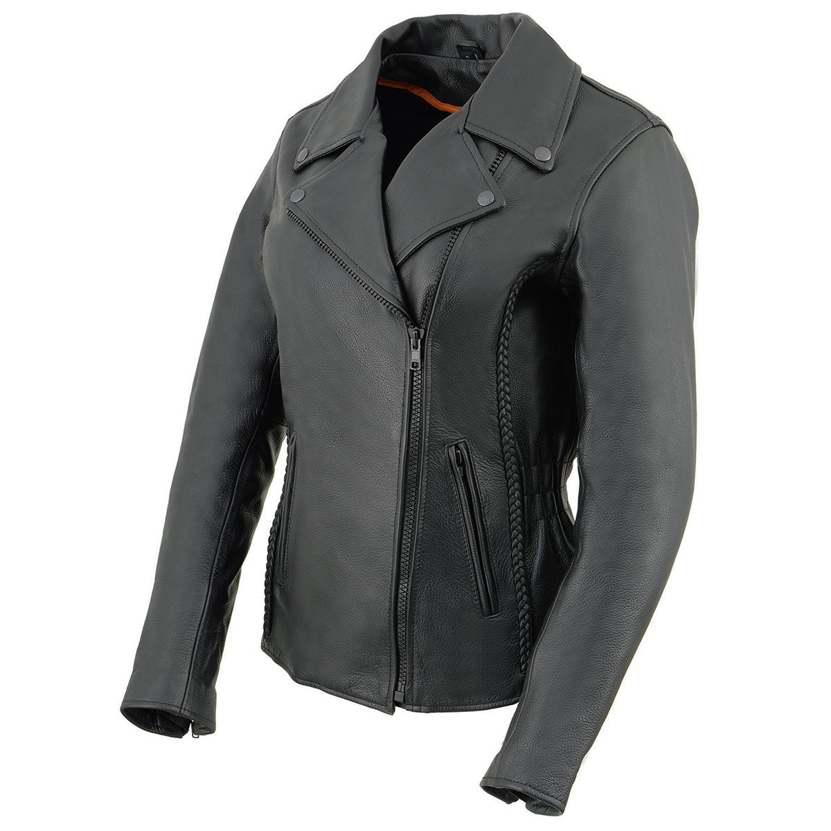Milwaukee Leather LKL2711 Women's Black Braided Leather Jacket with Stud Back Detailing