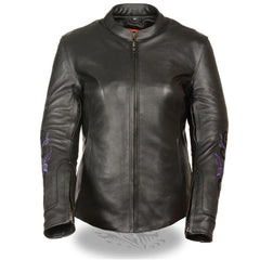 Milwaukee Leather ML2071 Women's Black Leather Jacket with Purple Butterfly Design
