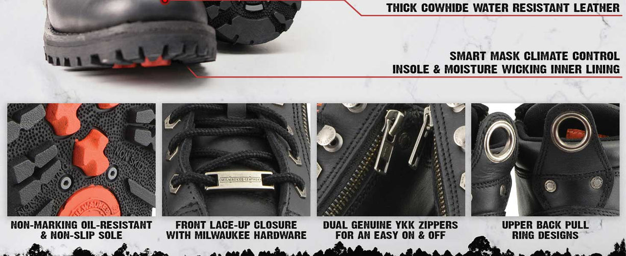 Milwaukee Leather MBL9423 Women's Black Studded Fashion Casual Boots with Studded Outsole