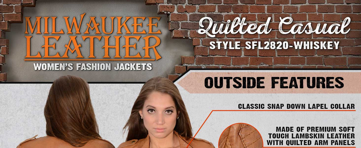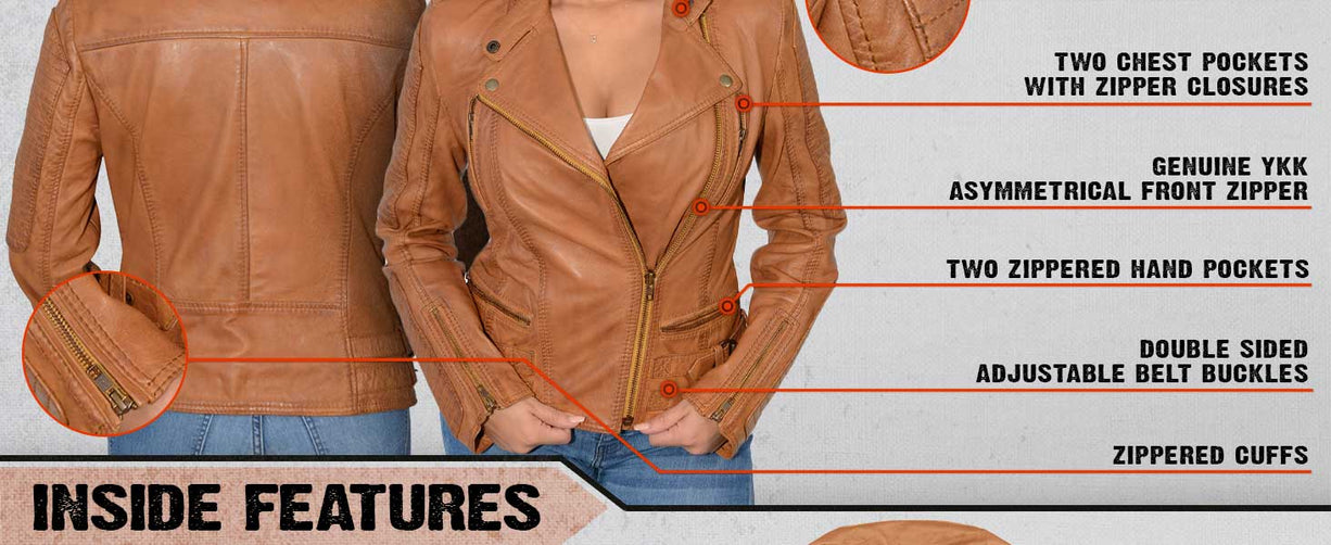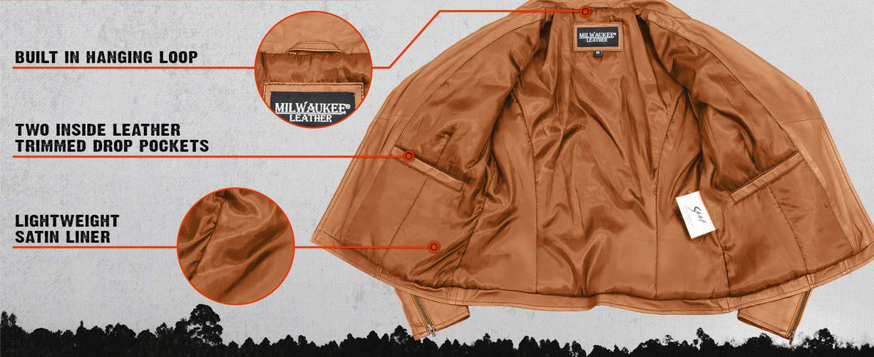 Milwaukee Leather SFL2855 Women's Saddle Zip Front Leather Jacket with Side Stretch Fitting