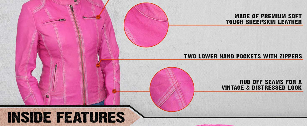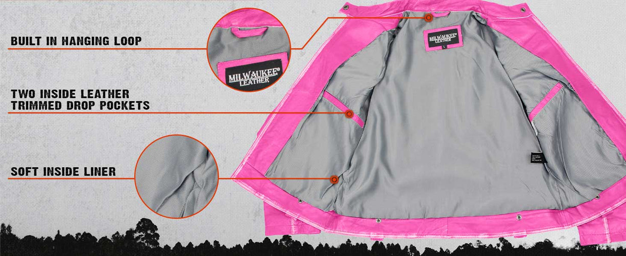 Milwaukee Leather SFL2855 Women's Saddle Zip Front Leather Jacket with Side Stretch Fitting
