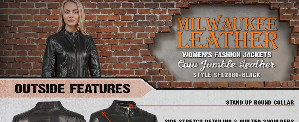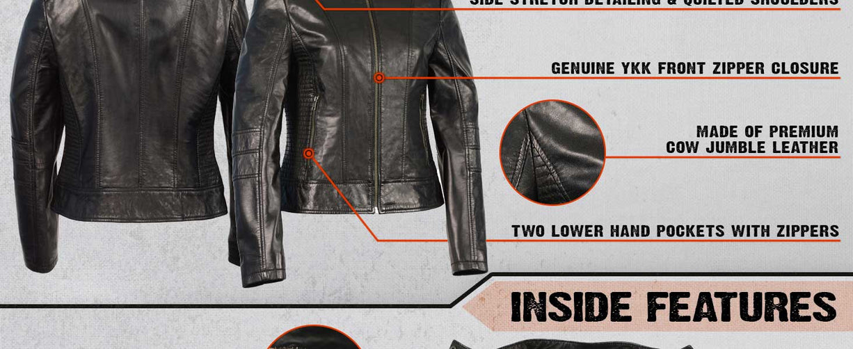 Milwaukee Leather SFL2855 Women's Saddle Zip Front Leather Jacket with Side Stretch Fitting