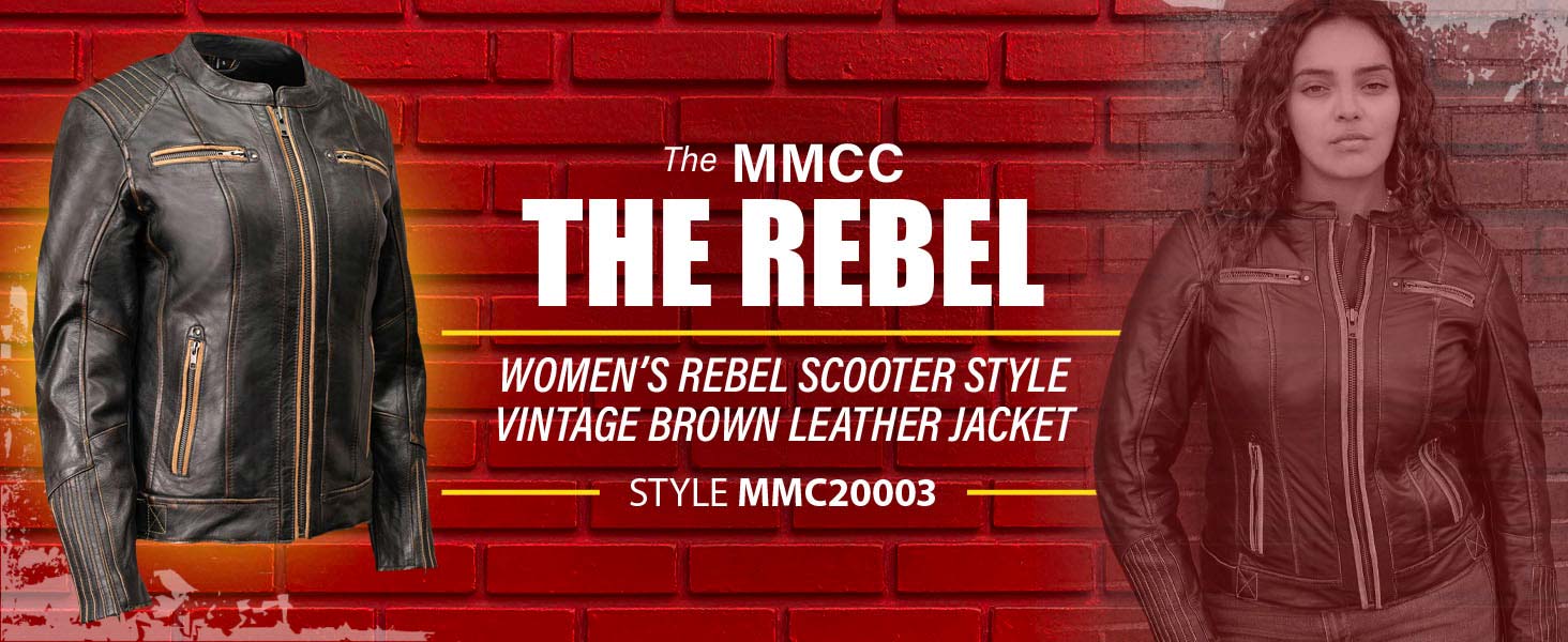 Milwaukee Motorcycle Clothing Co. Women’s Rebel Scooter Style Vinage Brown Leather Jacket w/ Mandarin Collar MMC20003