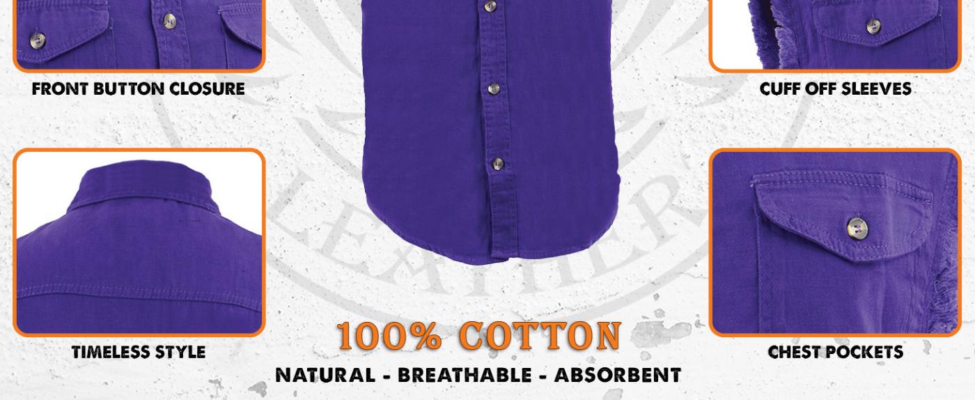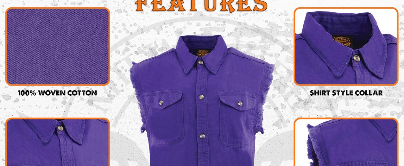 Milwaukee Leather DM4004 Men's Grey Lightweight Denim Shirt with Sleeveless Frayed Cut Off