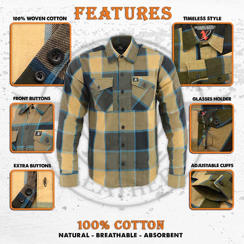 Milwaukee Leather MNG11667 Men's Brown and Beighe Long Sleeve Cotton Flannel Shirt