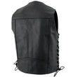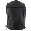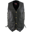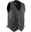 USA Leather 1204 Men's Black 'Dime' Classic Leather Ten Pocket Motorcycle Biker Vest with Side Laces